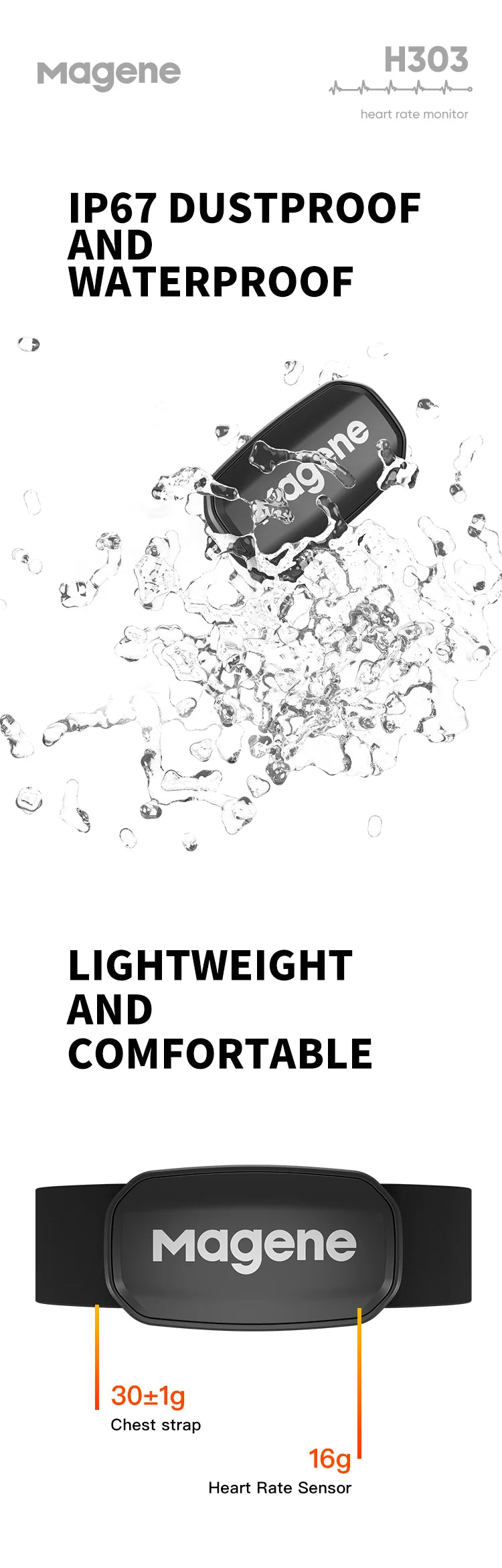 The Magene H303 Heart Rate Monitor delivers accurate, real-time heart rate tracking with Bluetooth 4.2 and ANT+ dual mode connectivity, making it compatible with a wide range of bike computers, sports watches, and fitness apps. Featuring a comfortable adjustable chest strap, long-lasting battery, and IP67 water resistance, it’s built for performance in any workout or ride.